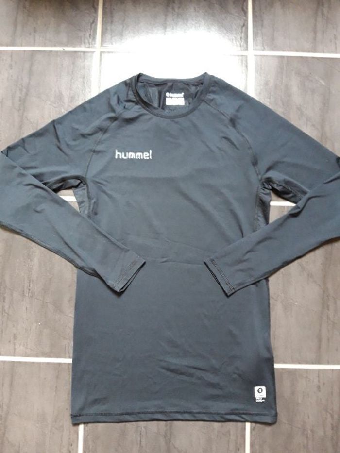 T shirt noir thermorégulation ( à porter sous un maillot de sport, mon fils les utilise pour le handball ) près du corps, marque hummel, il est neuf jamais porté, taille S