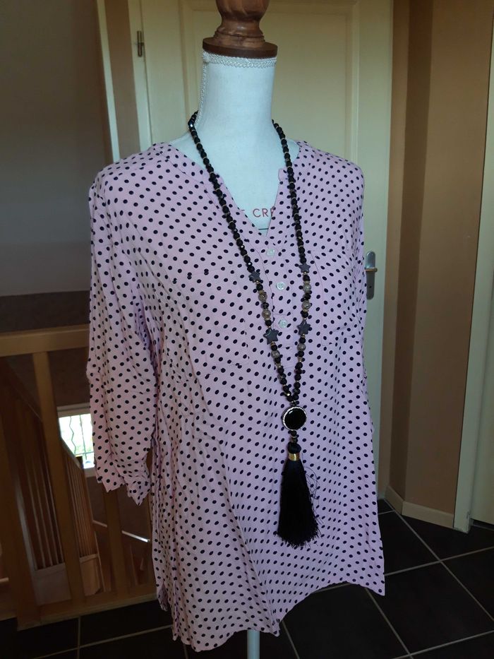 Jolie chemise longue rose clair à pois, taille 40, marque bonprix, très bon état.