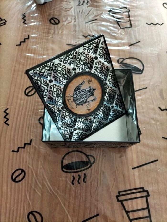 🫖Boîte en Métal 🫖 🫖 Thé 🫖 Café 🫖 Chocolat 🫖 Hauteur = 7 centimètres 🫖 Largeur = 15,50 centimètres 🫖 Longueur = 13,50 centimètres 🫖 Idéal pour ranger les sachets de Thé Les chocolats 🍫 Les dosettes de café.. 🫖 Très Bon État...