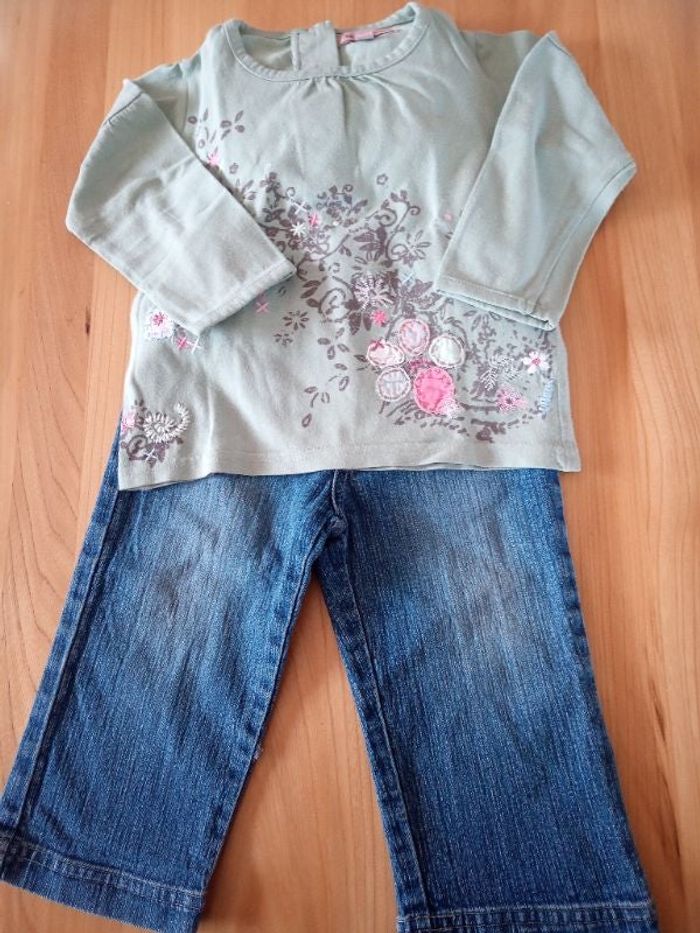 Ensemble tee-shirt shirt et jean en bon état. Marques Mini Adélie et MKP ON.