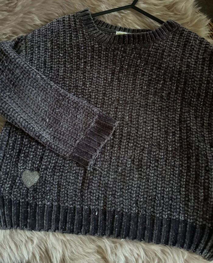 Pull gris fonce avec cœur sur le côté Vertbaudet 5 ans