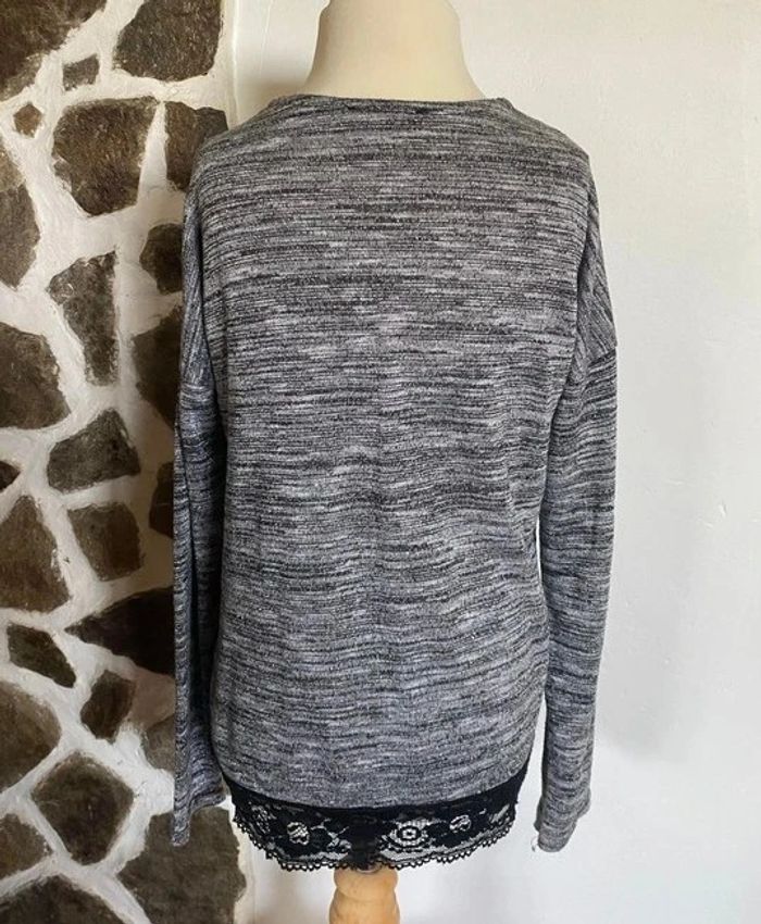 Gilet gris à paillettes bas dentelle noire Miss Liberto 10 ans - photo numéro 3