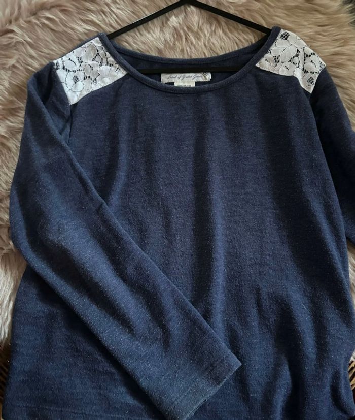 Pull / polo léger bleu marine avec dentelle épaules et bas H&M / L.O.G.G 6 ans