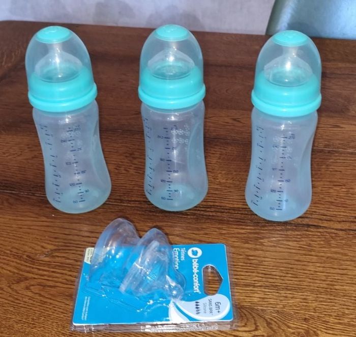 3 biberons avec tétine vitesse 3 + 1 tétine vitesse 3+cereales (neuve dans l'emballage)
