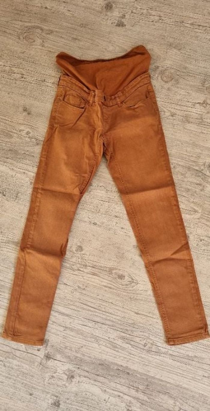 Pantalon avec bandeau intégré très confortable porté environ 3 mois en début de grossesse puis après l'accouchement (car entre les 2 c'été l'été) couleur rouille