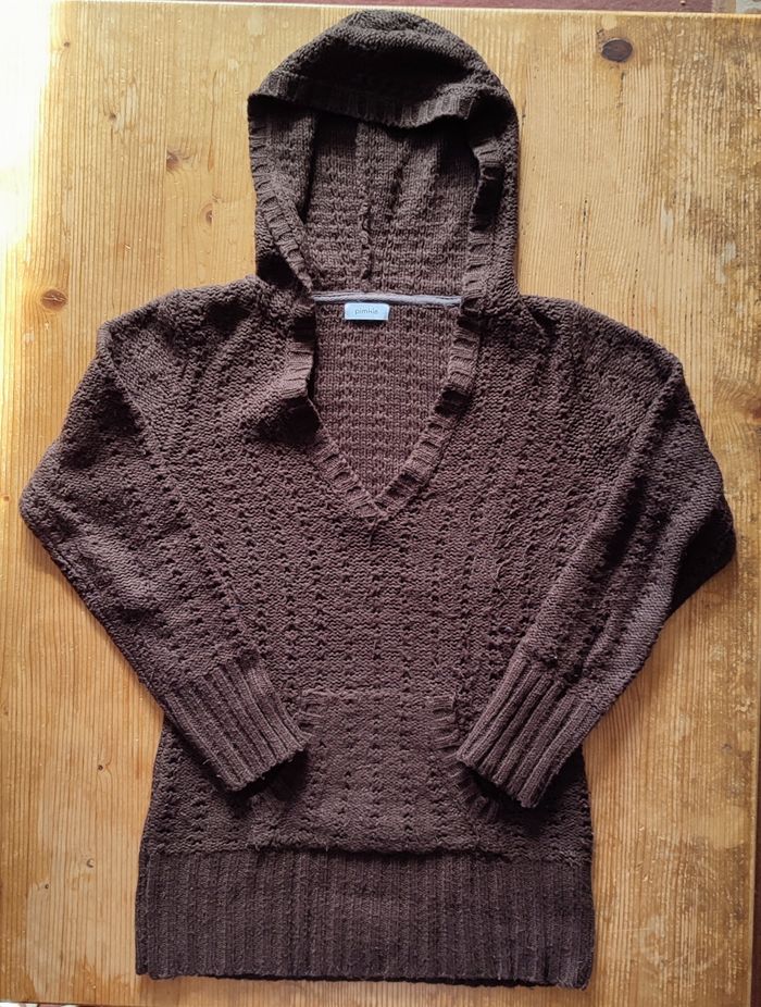 Pull long marron à capuche - M -TBE - photo numéro 7