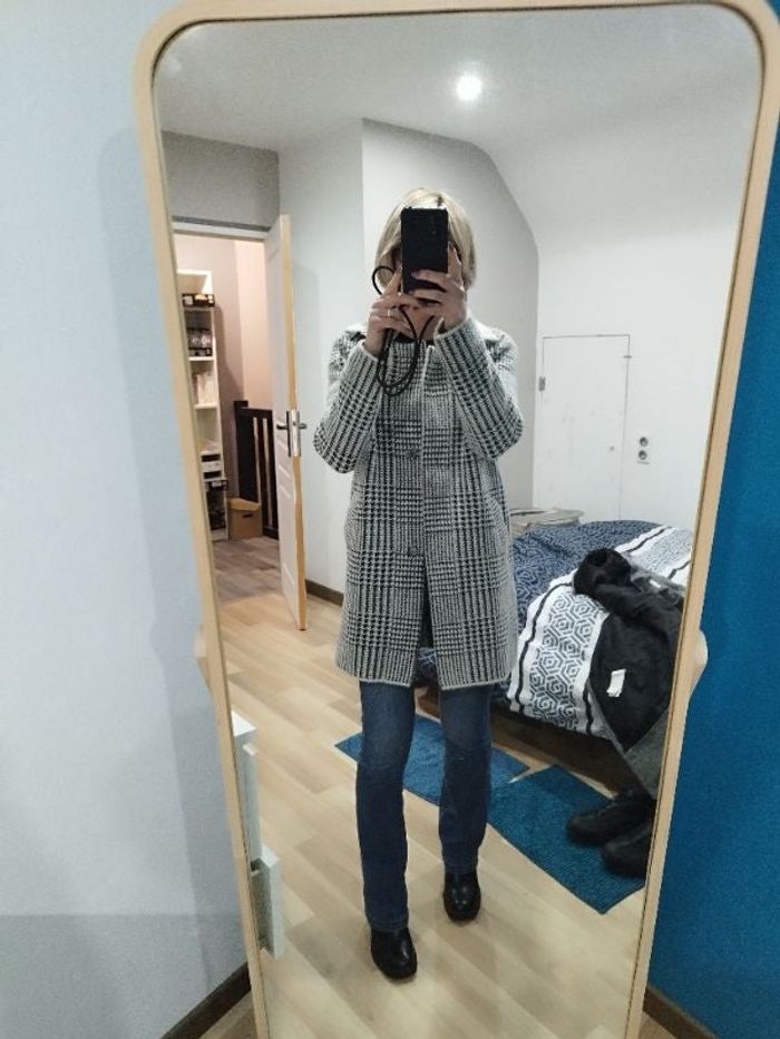 Coupe droite Couleur noir et blanche Fermeture par bouton pression Taille 36