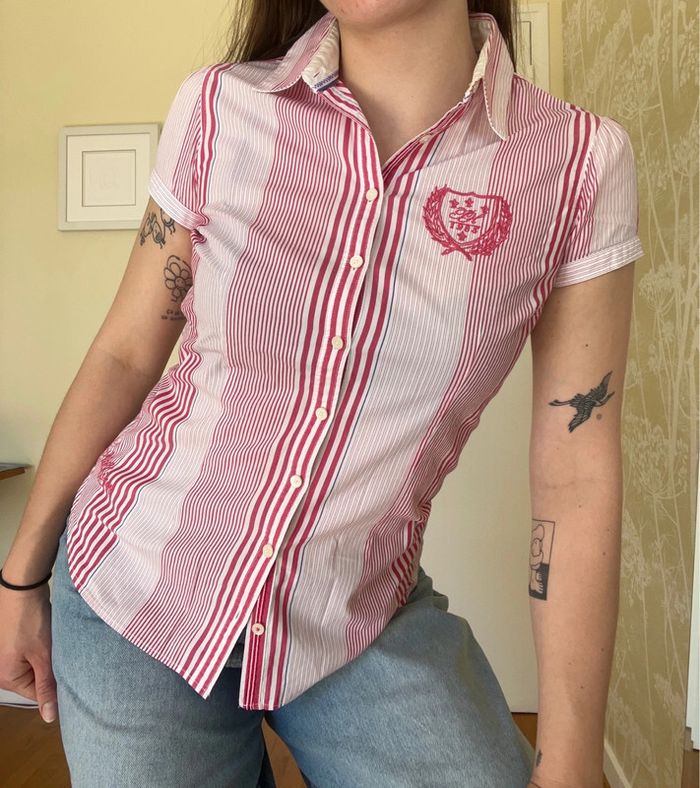 🌸 Chemise manches courtes stretch Tommy hilfiger (2 boutons en plus sur l’étiquette Taille: 36 Composition: 97% coton 3% spandex État: Très bon état 👩🏼Je mesure 1m75 pour 65 kilos et porte majoritairement du M 📩 N’hésitez pas à m’envoyer un message pour tous renseignements 💵Prix négociable dans la limite du raisonnable 👗Près de 200 pièces disponibles sur mon dressing - publications toutes les semaines - réductions sur lots activées —————————————————————— Tommy hilfiger original golf chemise rayée chic marque vintage estival été printemps casual boutonnée style classique vintage tommy preppy style academia old money style retro college style anglais chemise slim nostalgie look polished vibe campus girly universitaire working girl