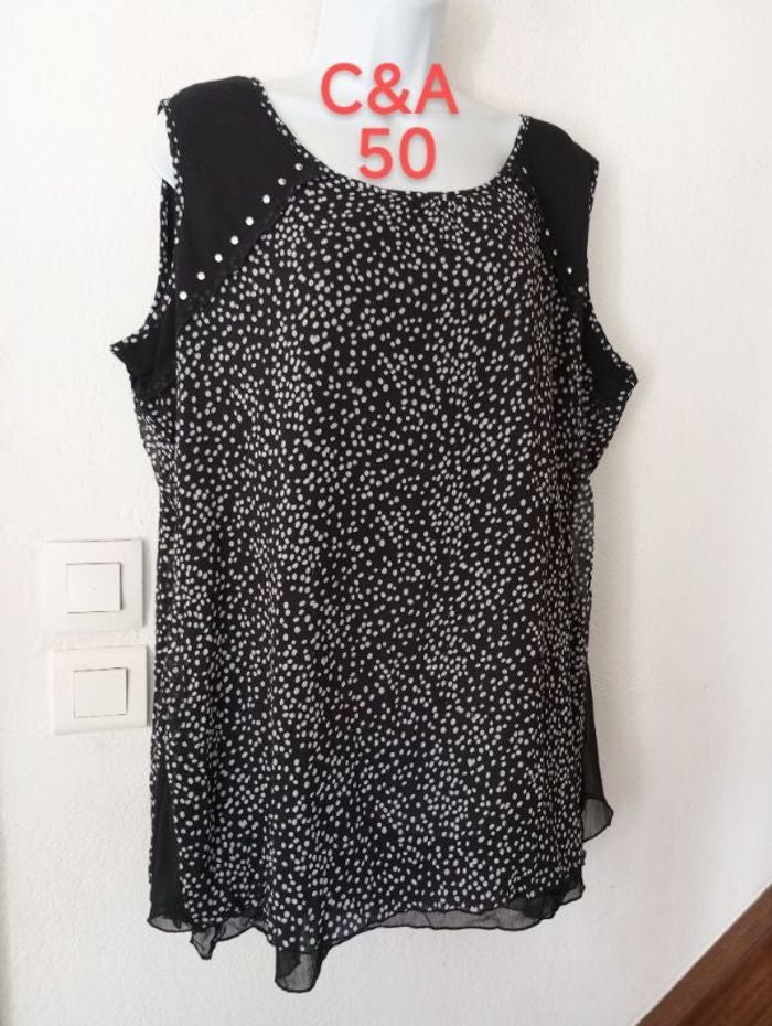 Blouse sans manche femme 50 Aisselle à aisselle 60 cm Marque C&A. En très bon état Noir, blanc #Patnimestaille50 Longueur 75 cm