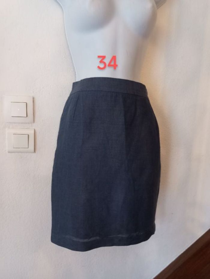 Superbe jupe avec 60% de lin et 40% coton femme taille 34 En très bon état Produit Français, Marque IRENE VAN RYB PARIS . Couleur bleu et doublure #Patnimestaille34 Longueur 46 cm
