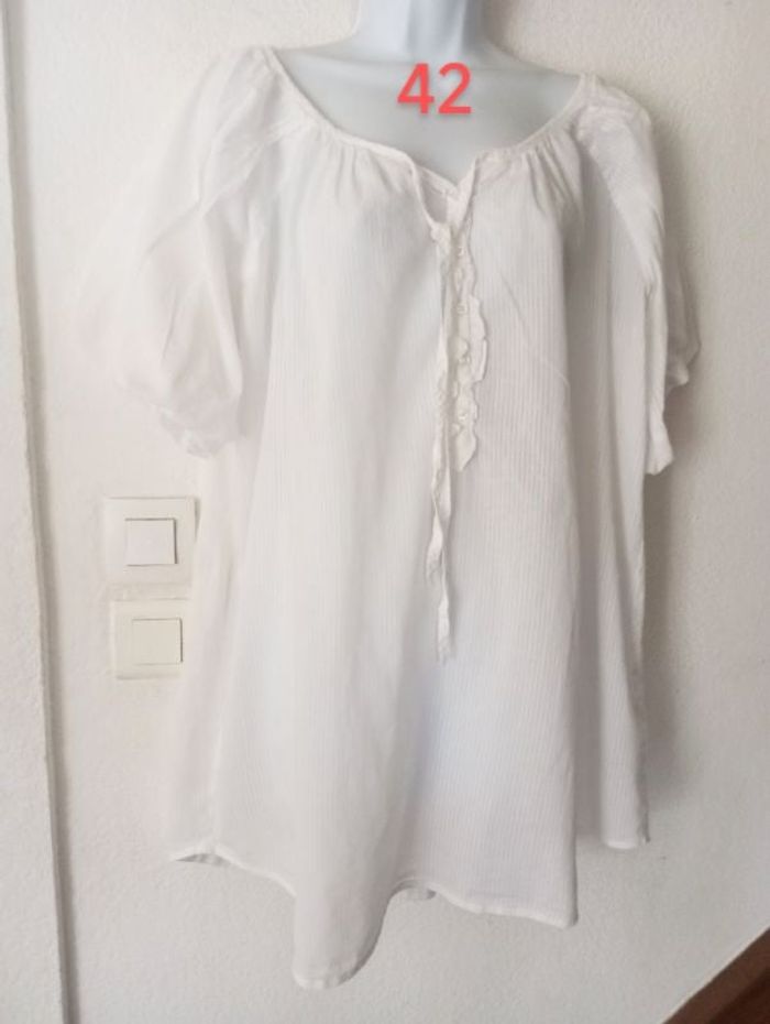 Superbe tunique longue ou robe courte femme 42 Marque 3 SUISSES. Blanc. En excellent état #Patnimestaille42 Longueur 71 cm
