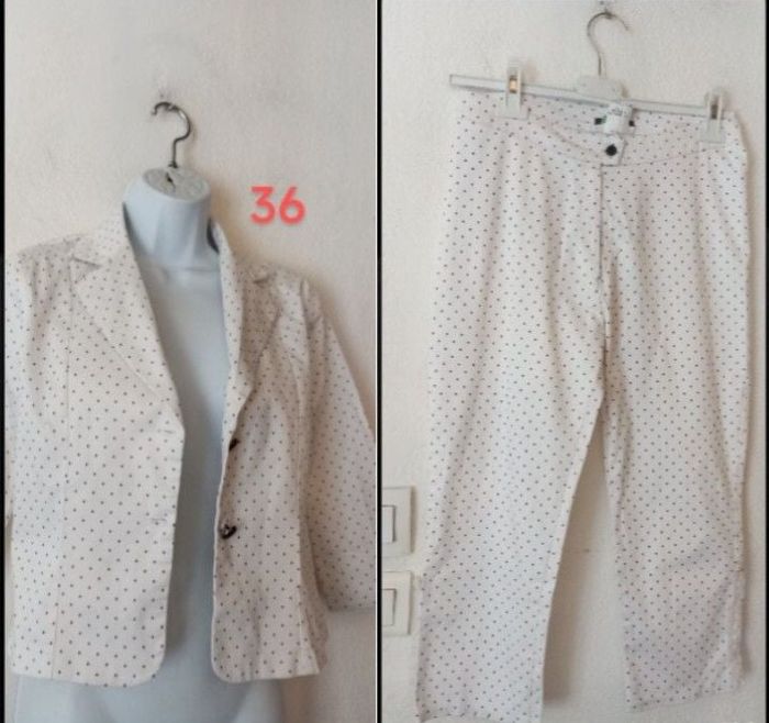 Superbe tailleur coton veste courte et pantacourt femme taille 36 Marque CLOARICE PARIS. Neuf Blanc à pois noir #Patnimestaille36 Longueur pantacourt 74 cm Longueur veste 50 cm