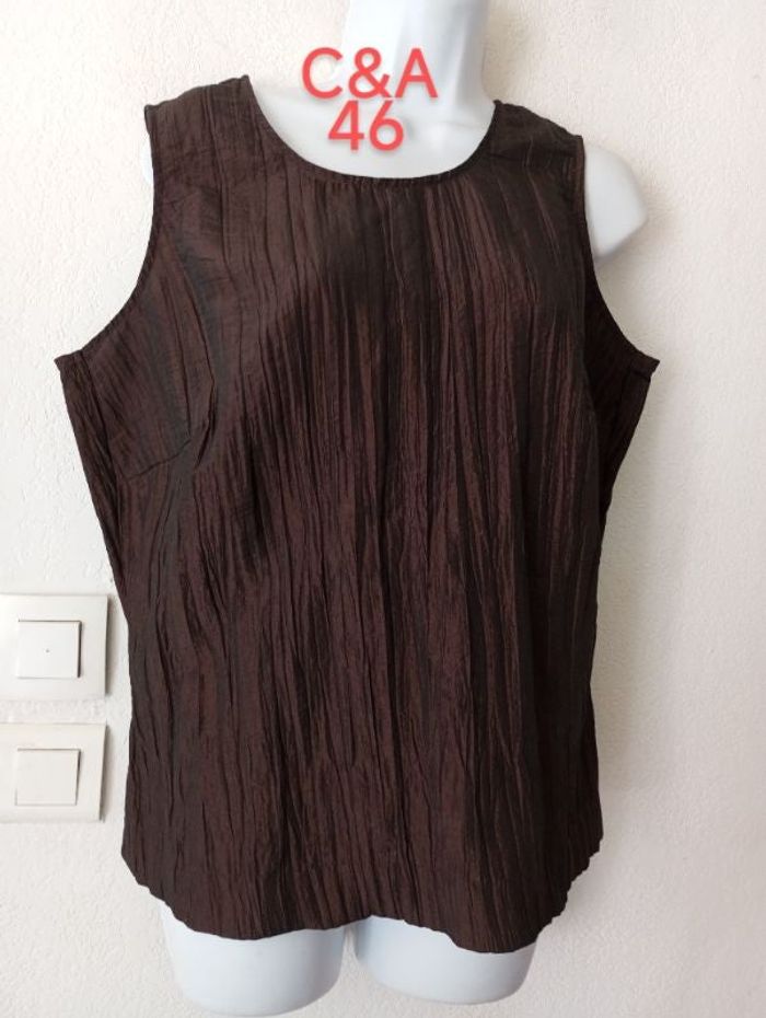 Superbe top plissé satiné femme 46 Aisselle à aisselle 53 cm Marque C&A. En excellent état. Marron foncé #Patnimestaille46 Longueur 60 cm