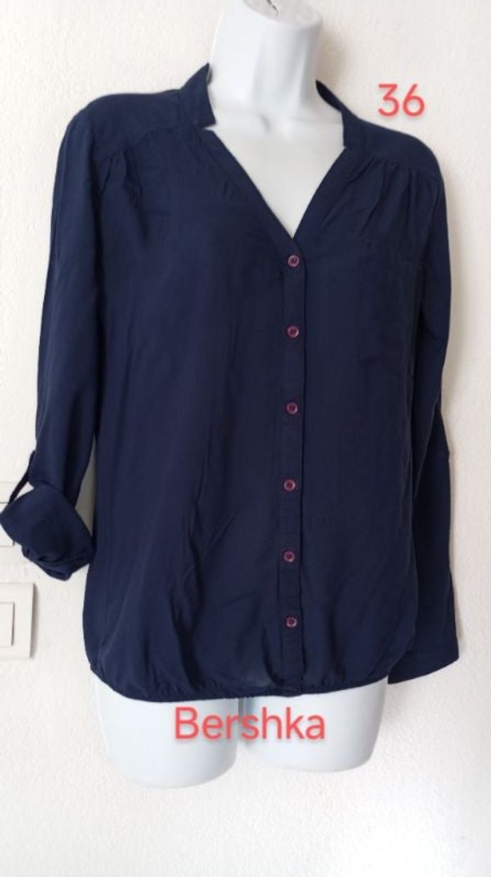 Superbe blouse manches longues femme taille 36 Marque BERSHKA. Bleu marine En excellent état. Manches retroussables. Bas de blouse élastiqué #Parnimestaille36 Longueur 61 cm