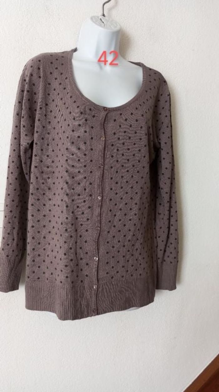 Superbe gilet marron clair à pois noir femme taille 42 Aisselle à aisselle 53 cm. En excellent état .Marque K WOMAN #Patnimestaille42 Longueur 67 cm