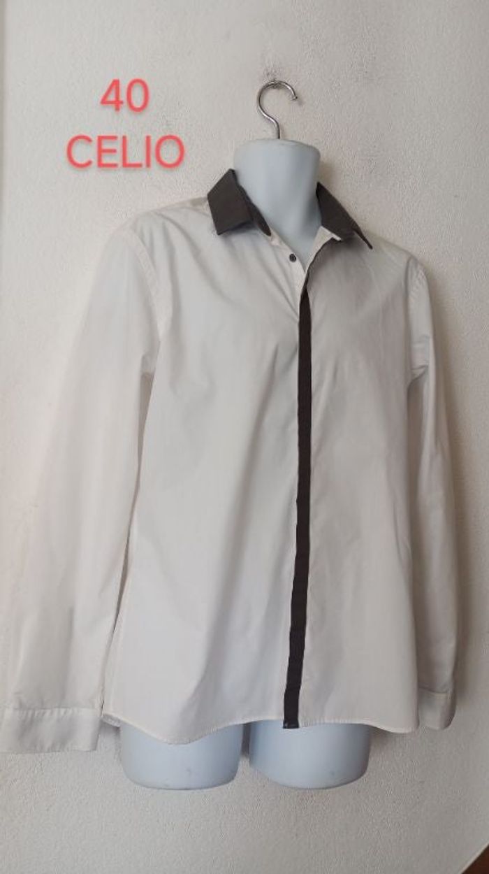 Chemise manches longues homme 40 En excellent état comme neuve Marque CELIO. Blanc, gris foncé #Patnimestaille40homme Longueur 72 cm