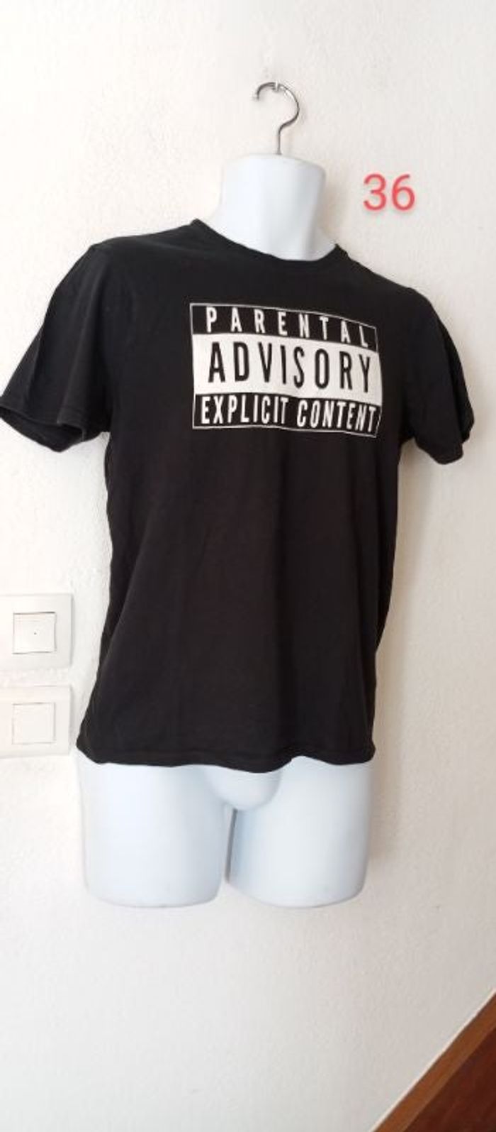 Tee shirt manches courtes homme 36 Marque PARENTAL ADVISORY Couleur noire, blanc. En TBE. Vous pouvez cliquer sur le lien suivant pour voir tout mon 36 homme #Patnimestaille36homme