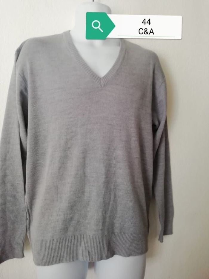 Pull mailles fines homme taille 44 Étiquette taille italienne, soit 44 France Aisselle a aisselle 55 cm En excellent état comme neuf Marque C&A. Gris clair. Vous pouvez cliquer sur le lien ci-dessous pour voir tout mon 44 #Patnimestaille44homme