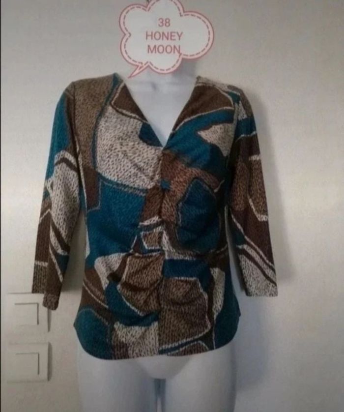 Superbe tunique fluide femme en taille 38. Manches 3/4. Aisselle à aisselle 46 cm. Marque Parisienne HONEY MOON. En excellent état. Très agréable à porter Longueur 57 cm. Vous pouvez cliquer sur le lien ci-dessous pour voir tout mon 38 #Patnimestaille38