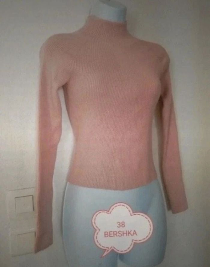 Superbe pull femme en taille 38, moulant. Marque BERSHKA Couleur rose saumonné pastel Col montant. Longueur a partir du haut du col 49 cm En très bon état. Vous pouvez cliquer sur le lien ci-dessous pour voir tout mon 38 #Patnimestaille38