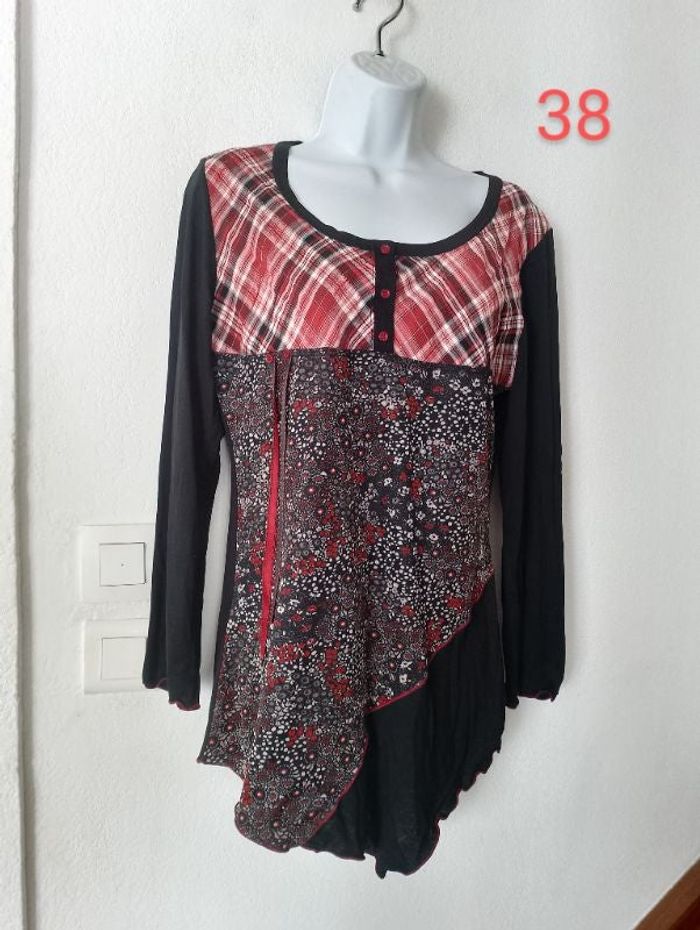 Superbe tunique manches longues femme taille 38 Fluide non transparente Aisselle à aisselle 44 cm. En TBE Couleur rouge, noir, crème Longueur à la pointe 77 cm. Vous pouvez cliquer sur le lien suivant pour voir tout mon #Patnimestaille38