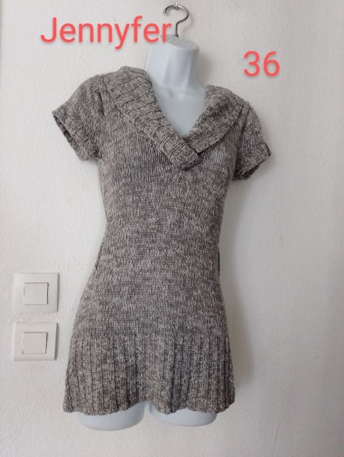 Superbe pull long manches courtes femme taille 36 Marque JENNYFER Couleur gris blanc. En très bon état Longueur 69 cm. Vous pouvez cliquer sur le lien suivant pour voir tout mon 36 #Patnimestaille36