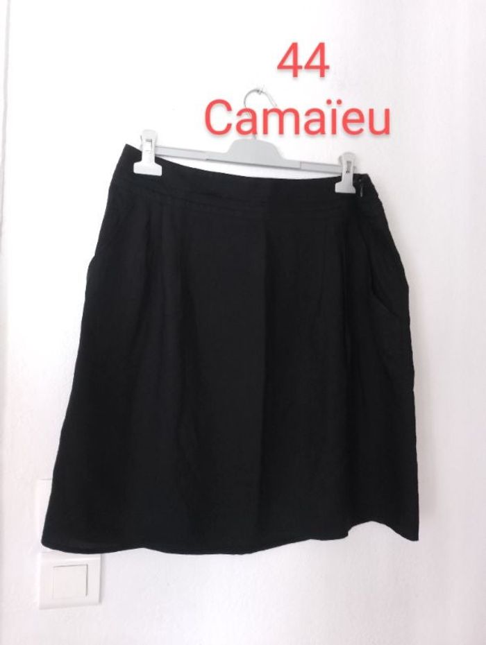 #Patnimestaille44 Superbe jupe femme taille 44 Marque CAMAÏEU. En excellent état comme neuve Couleur noir foncé . Poches plates côtés. Fermeture éclair côté Longueur 57 cm. Vous pouvez cliquer sur le lien ci-dessus pour voir tout mon 44