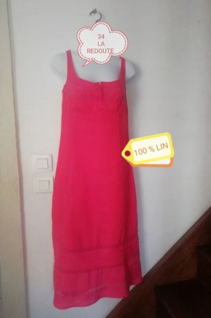 Superbe robe en lin femme en taille 34. Marque LA REDOUTE. Couleur rose foncé rouge. Neuve. Longueur 98 cm Vous pouvez cliquer sur le lien ci-dessous pour voir tout mon 34 #Patnimestaille34