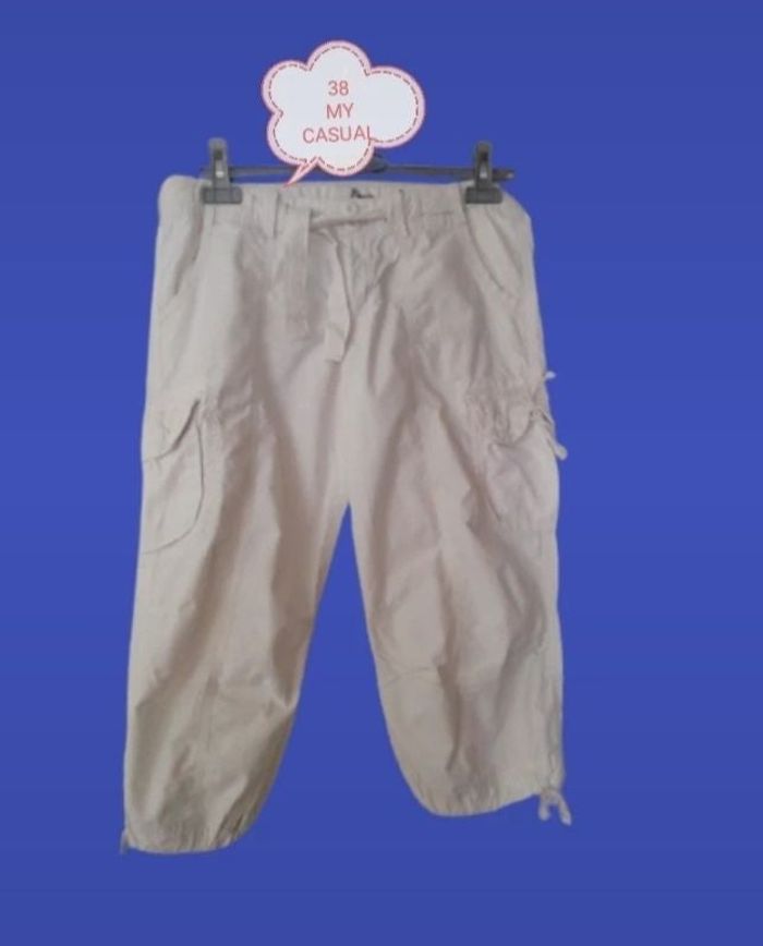 Superbe pantacourt femme en taille 38. En excellent état. Couleur blanc. Ceinture dentelle. Bas de jambe cordon. Marque MY CASUAL Vous pouvez cliquer sur le lien ci-dessous pour voir tout mon 38 #Patnimestaille38