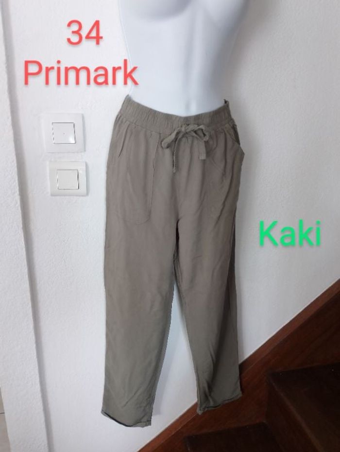 #Patnimestaille34 Pantalon léger femme taille 34. En excellent état comme neuf. Couleur kaki. Marque PRIMARK. Taille élastique et revers bas de jambe. Vous pouvez cliquer sur le lien ci-dessus pour voir tout mon 34