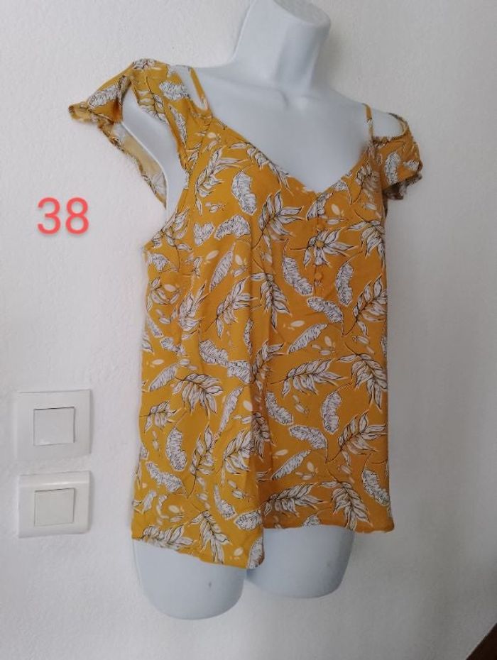 #Patnimestaille38 Superbe tunique légère couleur soleil femme taille 38. Marque KIABI. Épaules dénudées. Bretelles réglables. En excellent état. Vrai boutonnage. Longueur 40 cm à partir de la pointe poitrine. Vous pouvez cliquer sur le lien ci-dessus pour voir tout mon 38