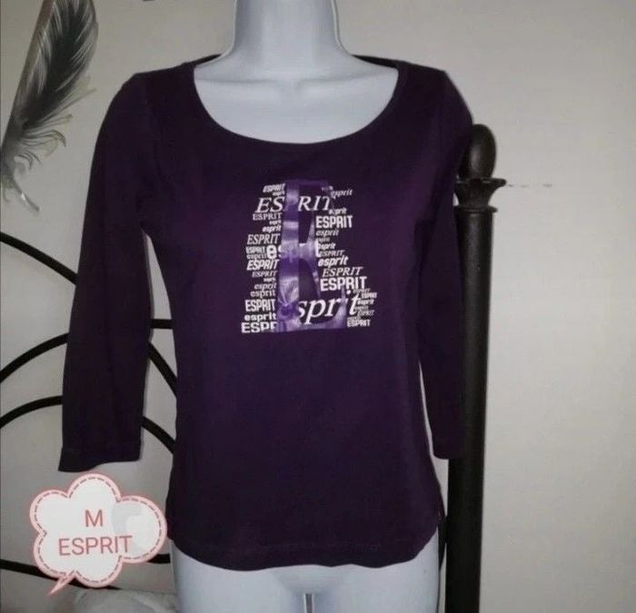 Superbe tee shirt manches 3/4 femme, taille 38. En excellent état comme neuf. Très beau violet foncé. Marque ESPRIT. 100 % coton. Vous pouvez cliquer sur le lien ci-dessous pour voir tout mon 38 #Patnimestaille38