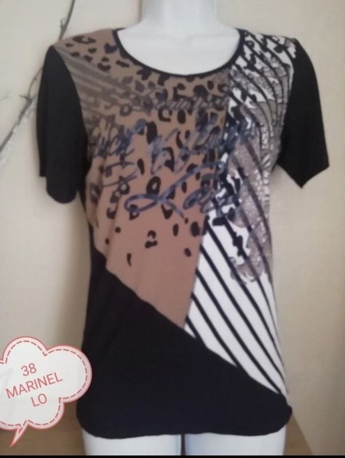 Beaucoup de charme pour ce tee shirt femme taille 38. En excellent état. Marque MARINELLO. Couleur noir, crème, marron clair . Longueur 57 cm. Vous pouvez cliquer sur le lien ci-dessous pour voir tout mon 38 #Patnimestaille38