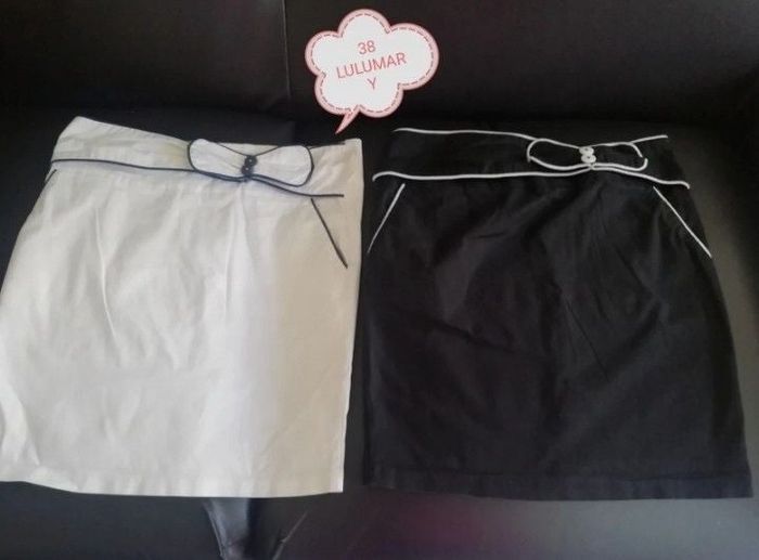 Lot de 2 jupes courtes femme, taille 38. En excellent état. 1 noir, 1 blanche. Longueur 45 cm. Marque LULUMARY. Vous pouvez cliquer sur le lien ci-dessous pour voir tout mon 38 #Patnimestaille38
