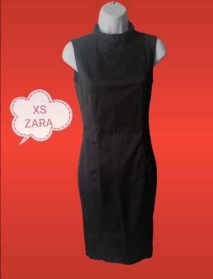 Magnifique robe près du corps, en taille XS. Couleur noir foncé, tissu de très bonne qualité. Marque ZARA. 2 vraies poches plaquées devant. Longueur 1.00 m. En Excellent état. Vous pouvez cliquer sur le lien ci-dessous pour voir tout mon 34 #patriciaponziotaille34