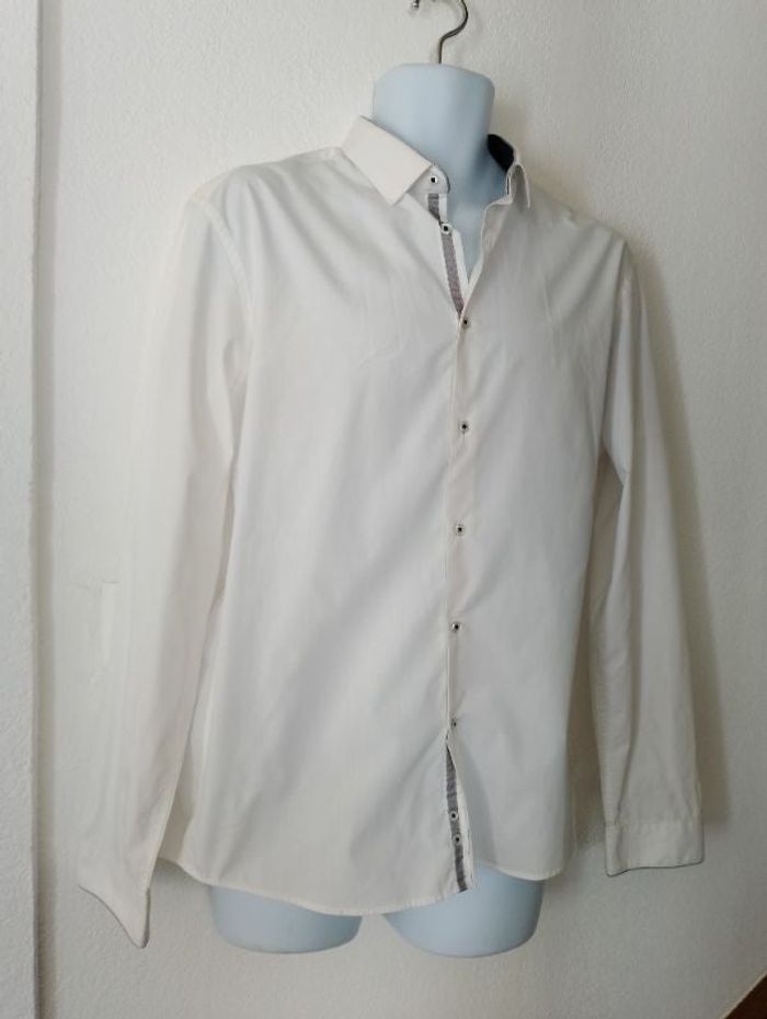 Superbe chemise homme manches longues taille L. En excellent état comme neuve. Marque CELIO. Couleur blanc, bandes grises. Vous pouvez cliquer sur le lien ci-dessous pour voir tout mon 40 homme #Patnimestaille40homme