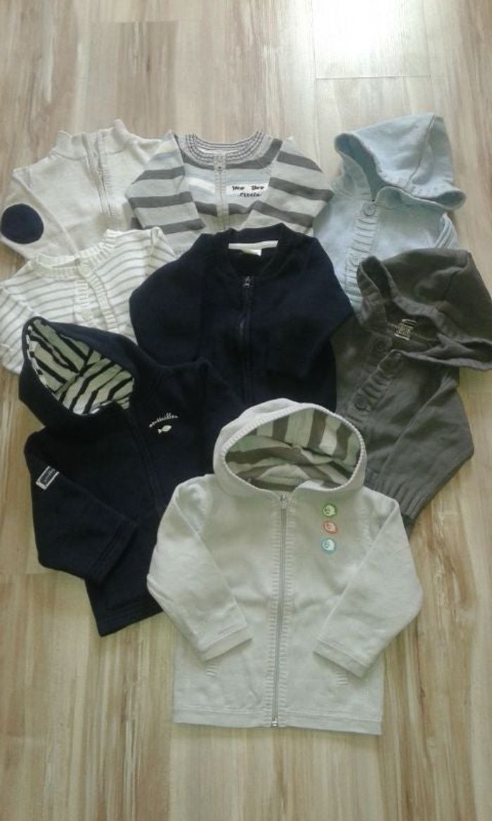 Lot de 8 gilets. Taille 12 mois (kiabi, orchestra, Tape à l'oeil,..) Possibilité de les vendre à l'unité