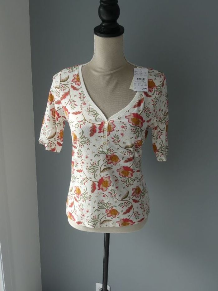 T-shirt blanc fleuri femme marque camaieu Taille M Neuf