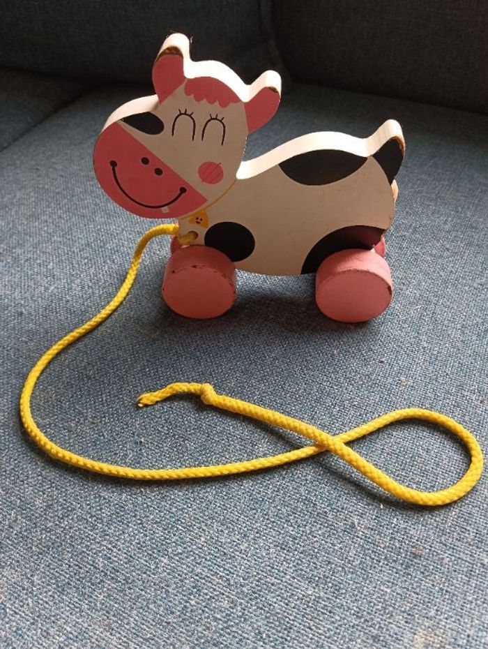 Jouet bébé, jeu en bois " la vache à tirer"