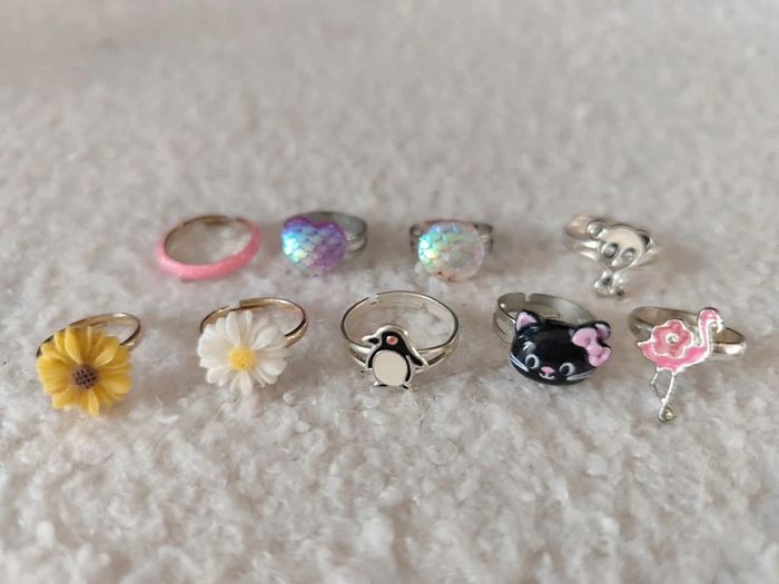 Lot de 9 bagues fille réglable - photo numéro 1