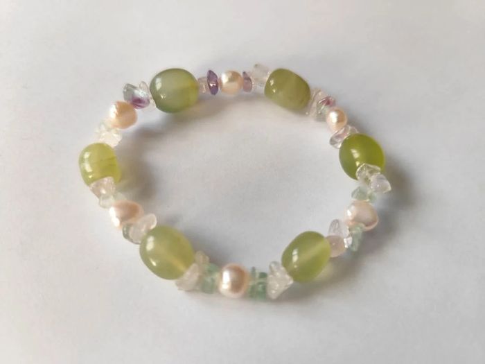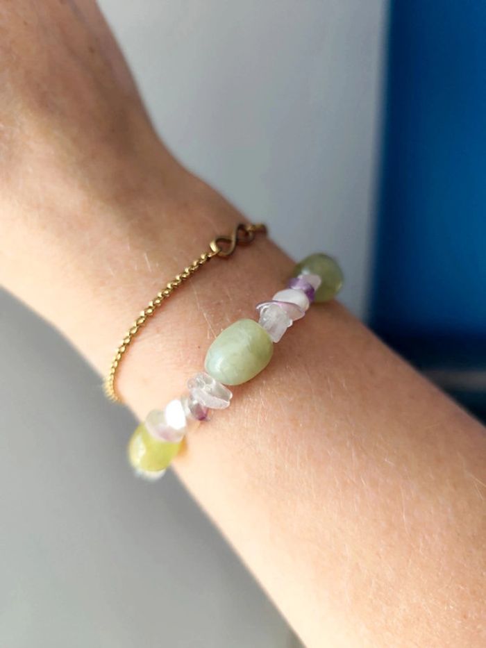 Bracelet élastique en pierre jade quartz rose améthyste nacre - photo numéro 1