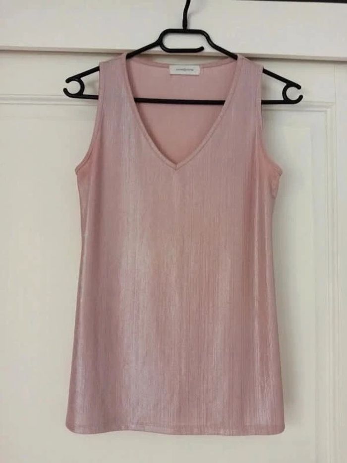 T-shirt top débardeur cache cache rose scintillant taille 2 = 38/40 - photo numéro 2