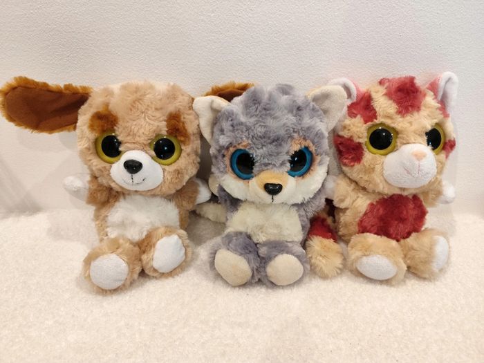 #sev8059jouets Lot de 3 belles peluches gros yeux 24cm Très bon état Voir mes autres ventes pour regrouper