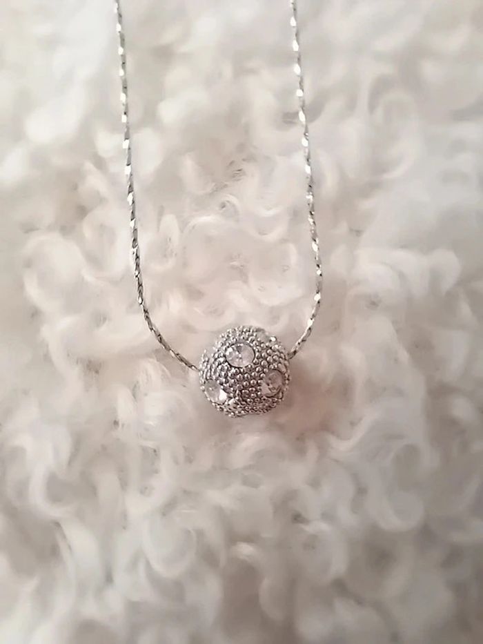 Collier chaine et pendentif boule strass neuf - photo numéro 1