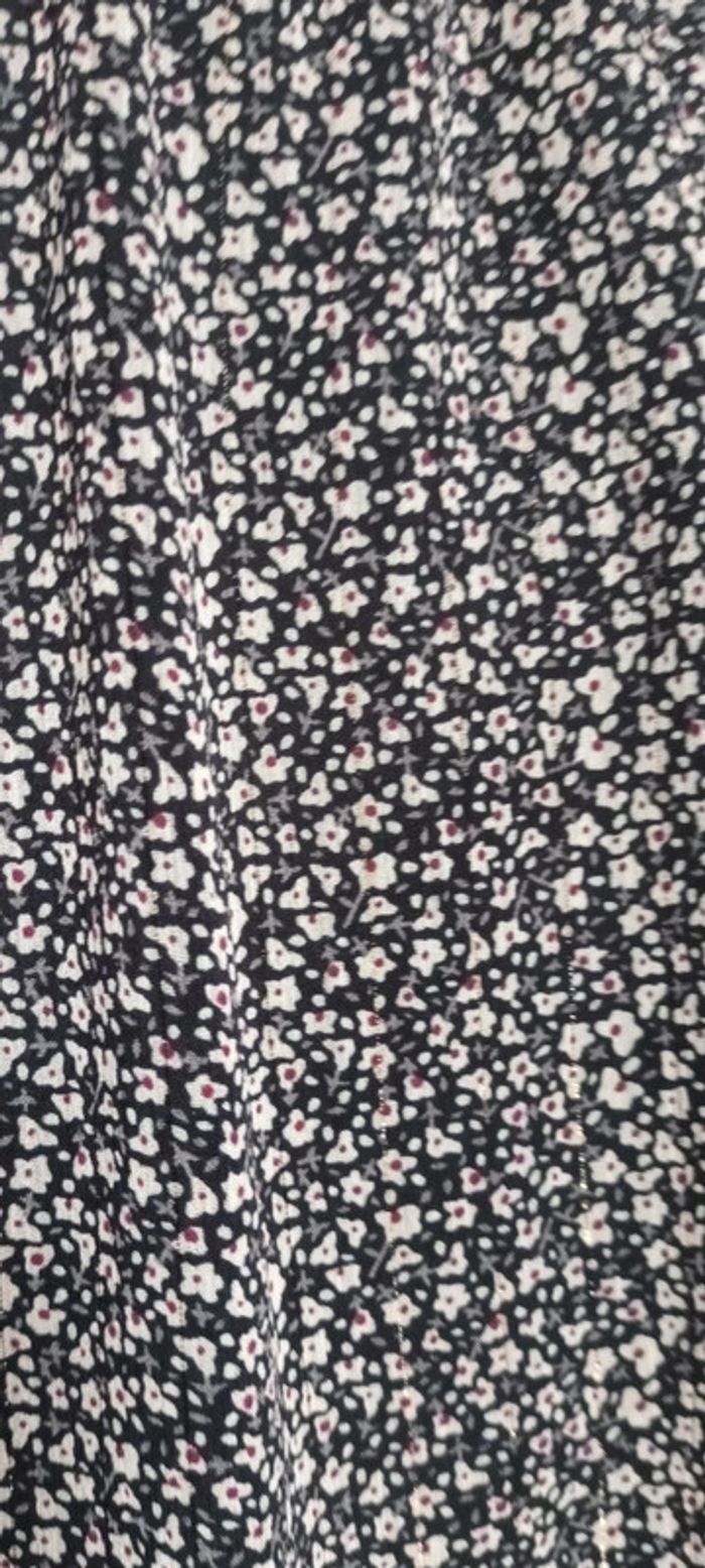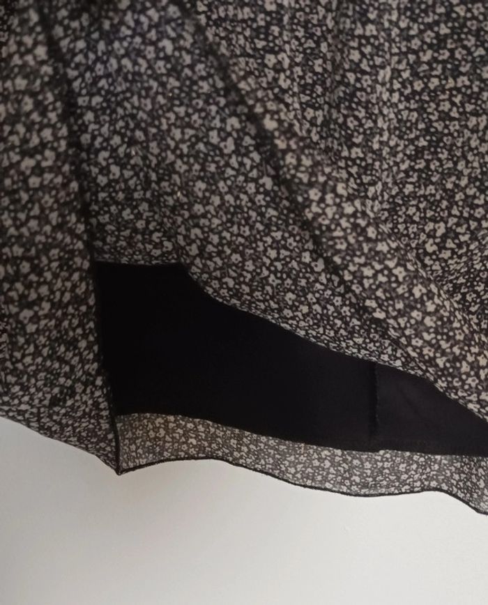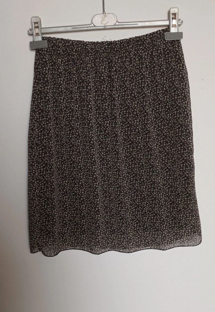 Jupe en voile doublée, très fin liseré doré, fleursbeige et points bordeaux. Excellent état Hauteur 54 cm