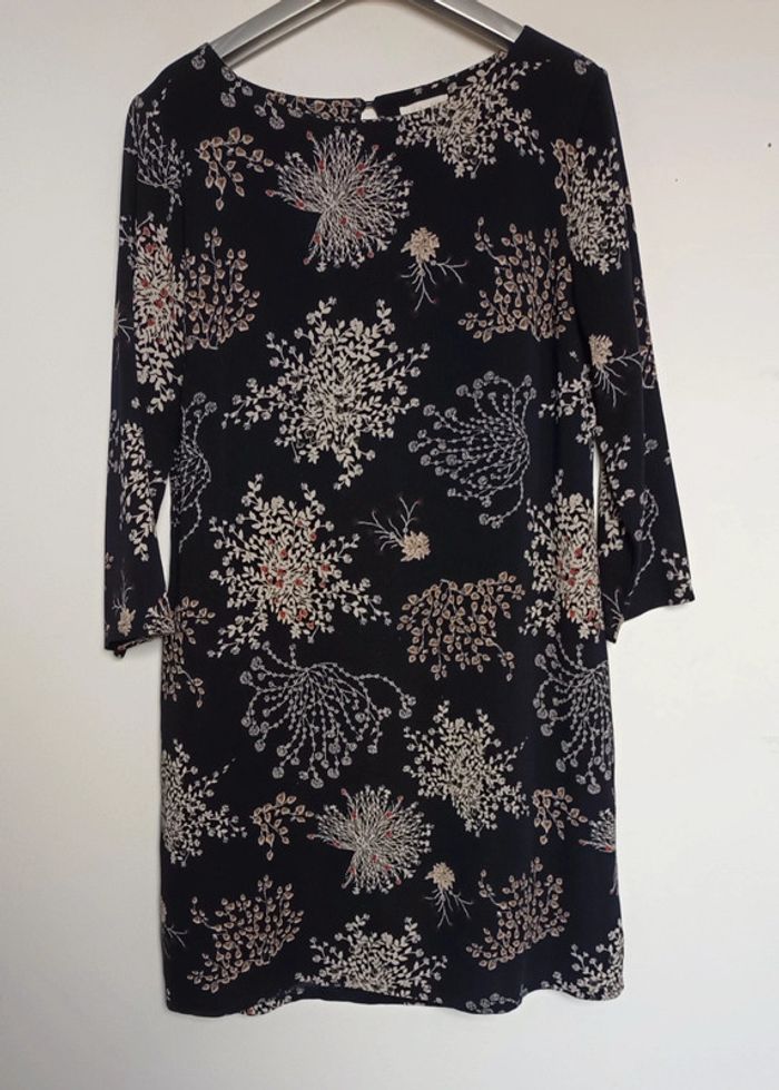 Robe fleurie manches 3/4 fond marine
