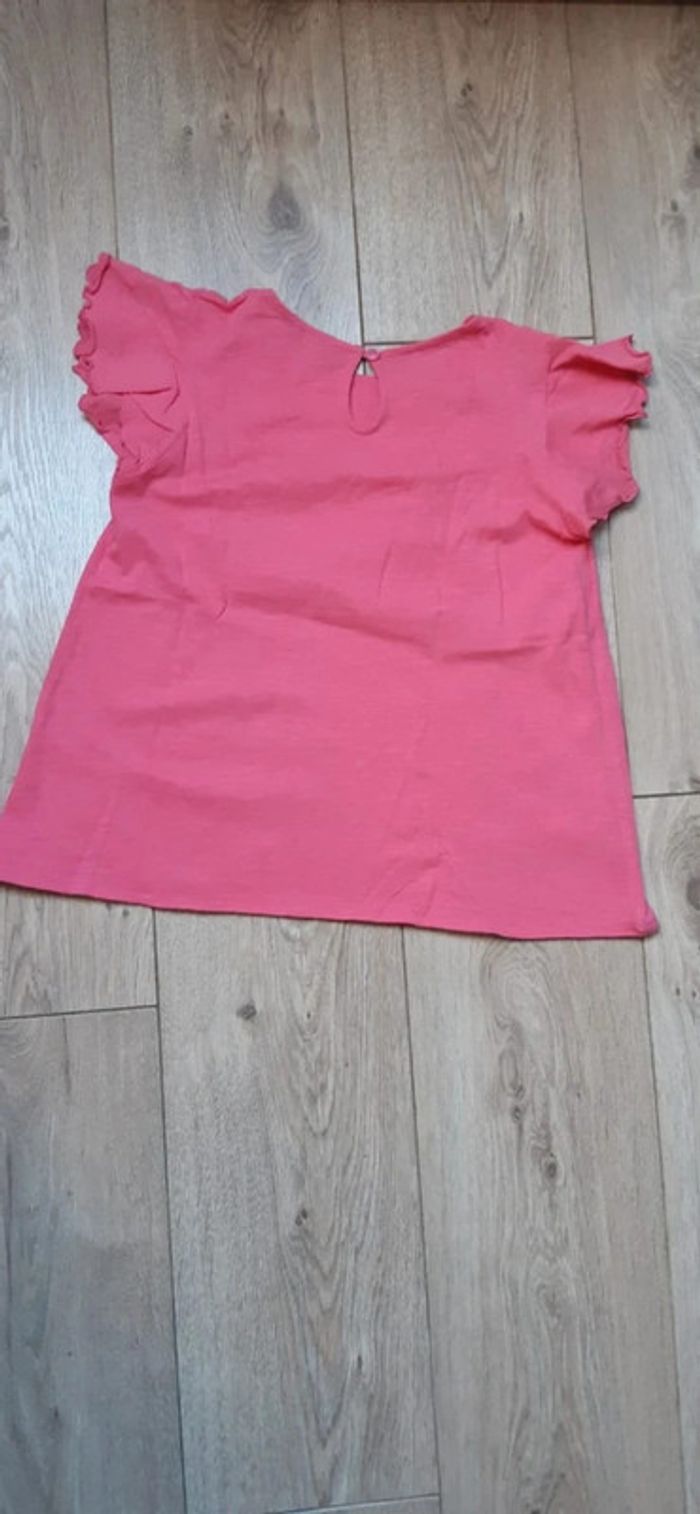 Tee-shirt / haut manches volantées okaidi rose 10 ans état neuf - photo numéro 3