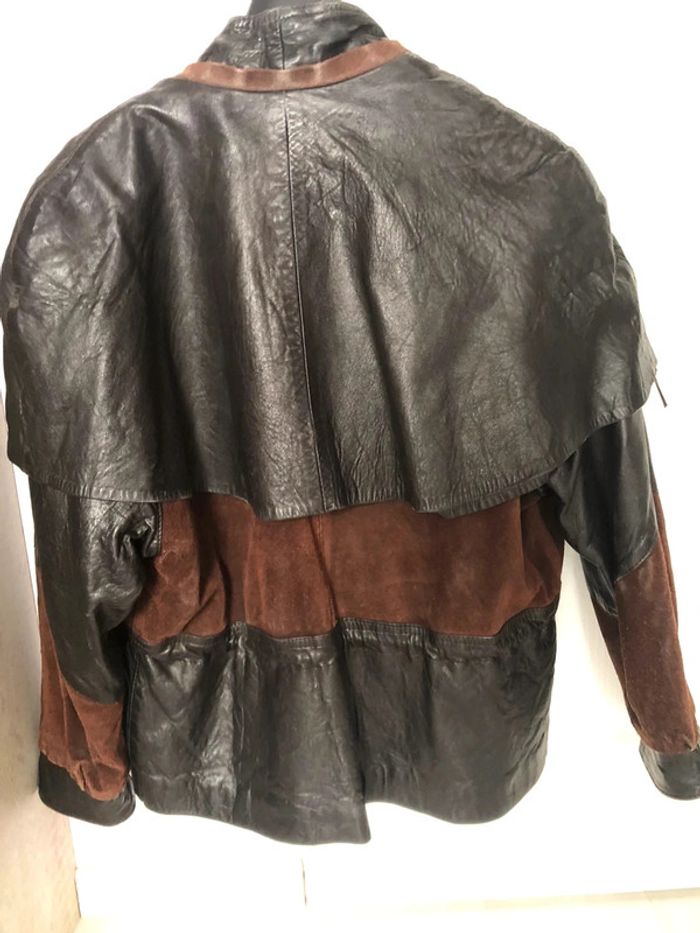 Blouson en cuir et daim taille 40/42 leather the first cape en cuir intérieur doublé cuir véritable fabrication française voir étiquettes en photo je n’ai pas la facture d’authenticités de l’article fermeture par pression serrable à la taille #largesmarjorieL #largesmarjorie40 #largesmarjorie42