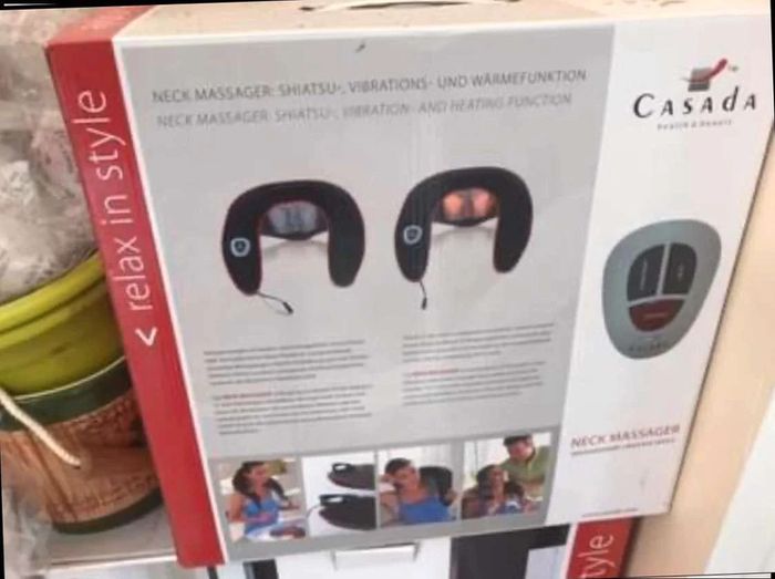 utilisé 3 fois en parfais état #detenterelaxation #massage #largesmarjorieaccessoires Les têtes de massage du Neck Massager sont conçues pour être utilisées directement sur les muscles du cou et sur d’autres parties du corps. Le massage Shiatsu peut être ajusté dans les deux sens et son effet est renforcé par la chaleur. L'intensité du massage est réglable en tirant plus ou moins fort sur les anses. C'est le produit idéal pour les personnes souffrant de douleurs aux cervicales. Acheter 149€