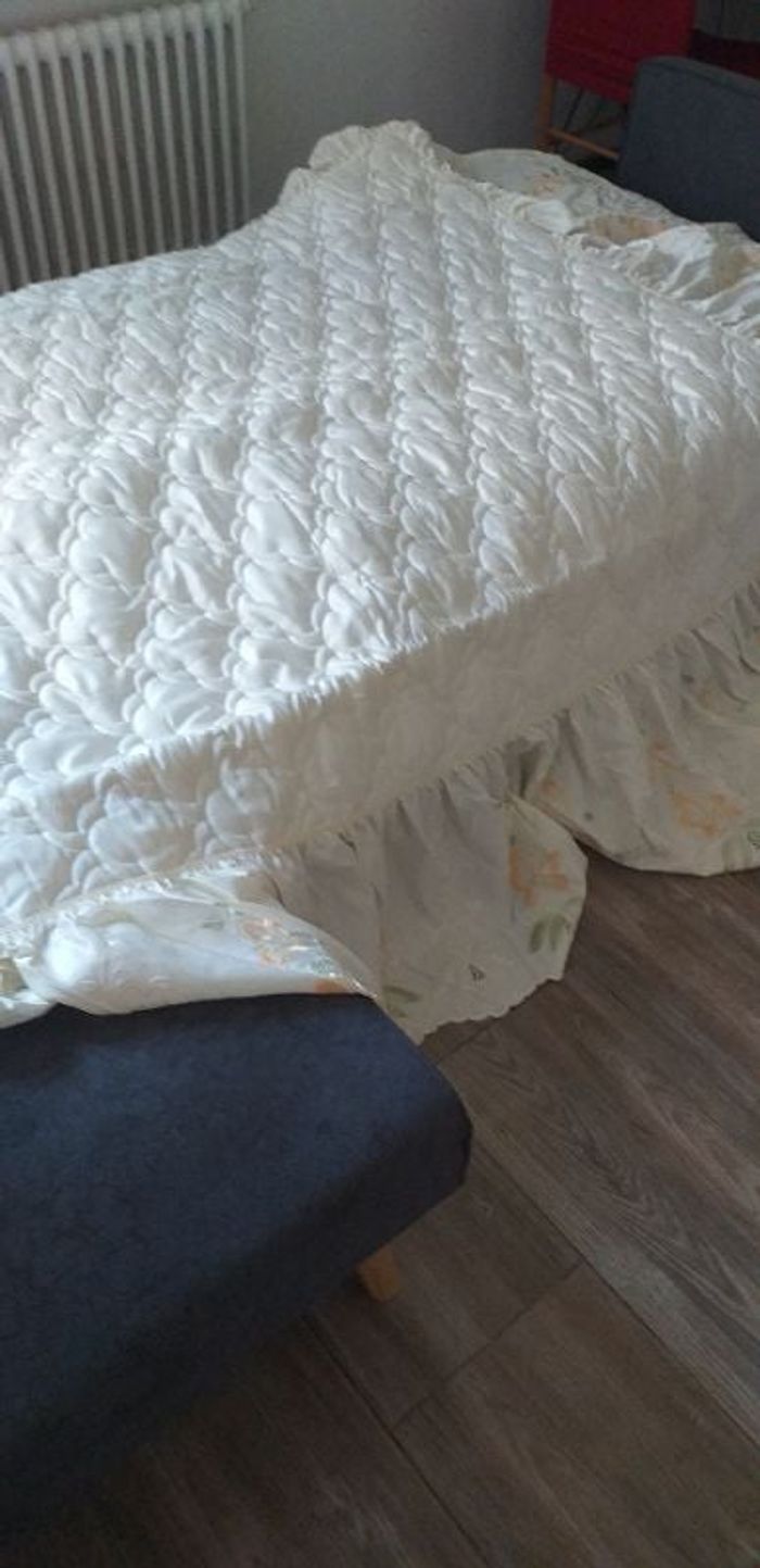 Couvre lit avec 2 taies d oreillers assorties neuf jamais utilisé 100%polyester bien épais et matelassé avec volants entièrement brodés #literie_del4